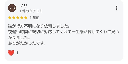ペット捜索のご依頼をいただいたお客様から、たくさんのお喜びの声をいただきましたので一部ご紹介いたします。